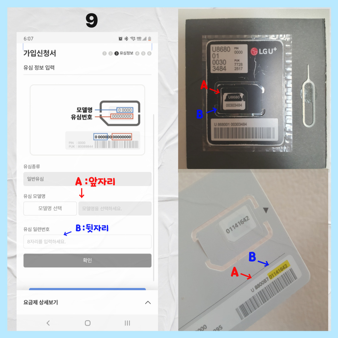 🔸 8단계: 유심 번호 적기